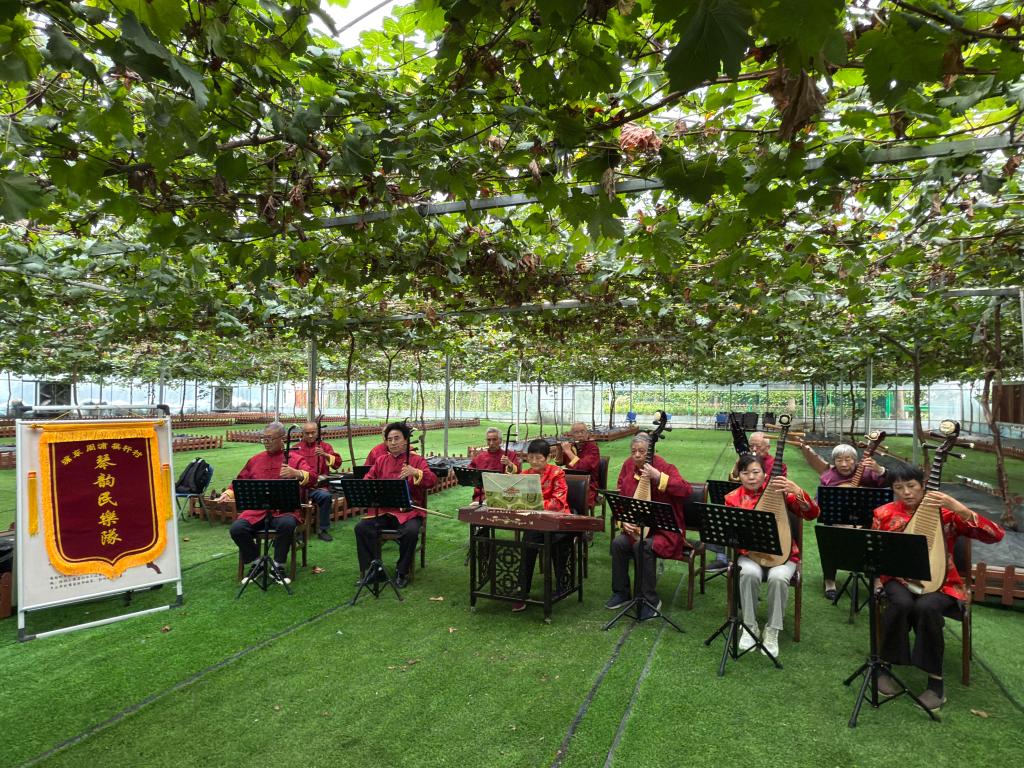 棋杆村内“葡萄架下微家”在进行民乐演出。(受访者供图)