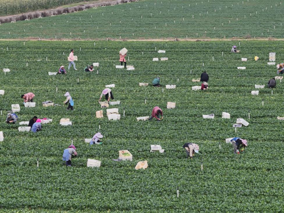 富楼村村民正在田间采摘菜心。(大岗党政办供图)