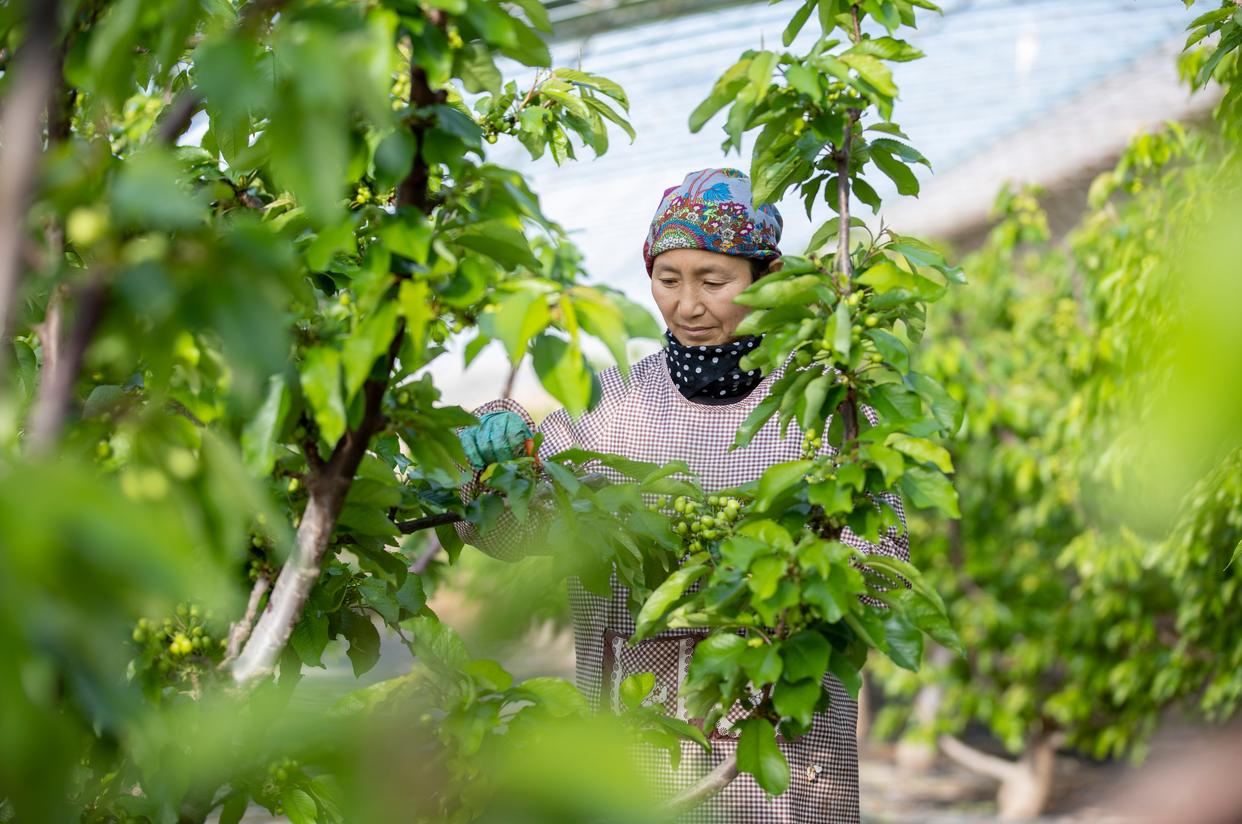 近年来,宁夏银川市贺兰县习岗镇立足当地土地资源优势,推进新平村设施园区建设,建成占地12000亩、设施温棚4500栋的设施农业园区,在种植番茄、辣椒、茄子等传统作物的基础上,引进樱桃、草莓、桑葚等40余种经济效益较高的特色作物,带动3000多名农民增收致富,助力乡村振兴。